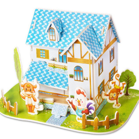 Quebra-cabeça de brinquedo infantil, criativo, diy, papel 3d, estereoscópico, quebra-cabeça, modelo 3d, casa, boneca